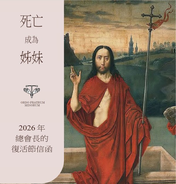 今年是聖方濟逝世八百週年,方濟會總會長為我們寫了復活節信函。他提醒我們,聖方濟將死亡視為「姊妹」,以謙卑與服務迎接生命的終點,並在脆弱與傷口中找到光明。聖方濟的生命見證告訴我們:復活節不只是禮儀中的一段時期,而是一種生活方式——在恐懼、危機與矛盾中,仍能以信賴、愛與服務活出希望,讓每一次死亡都成為通往新生命的門檻。