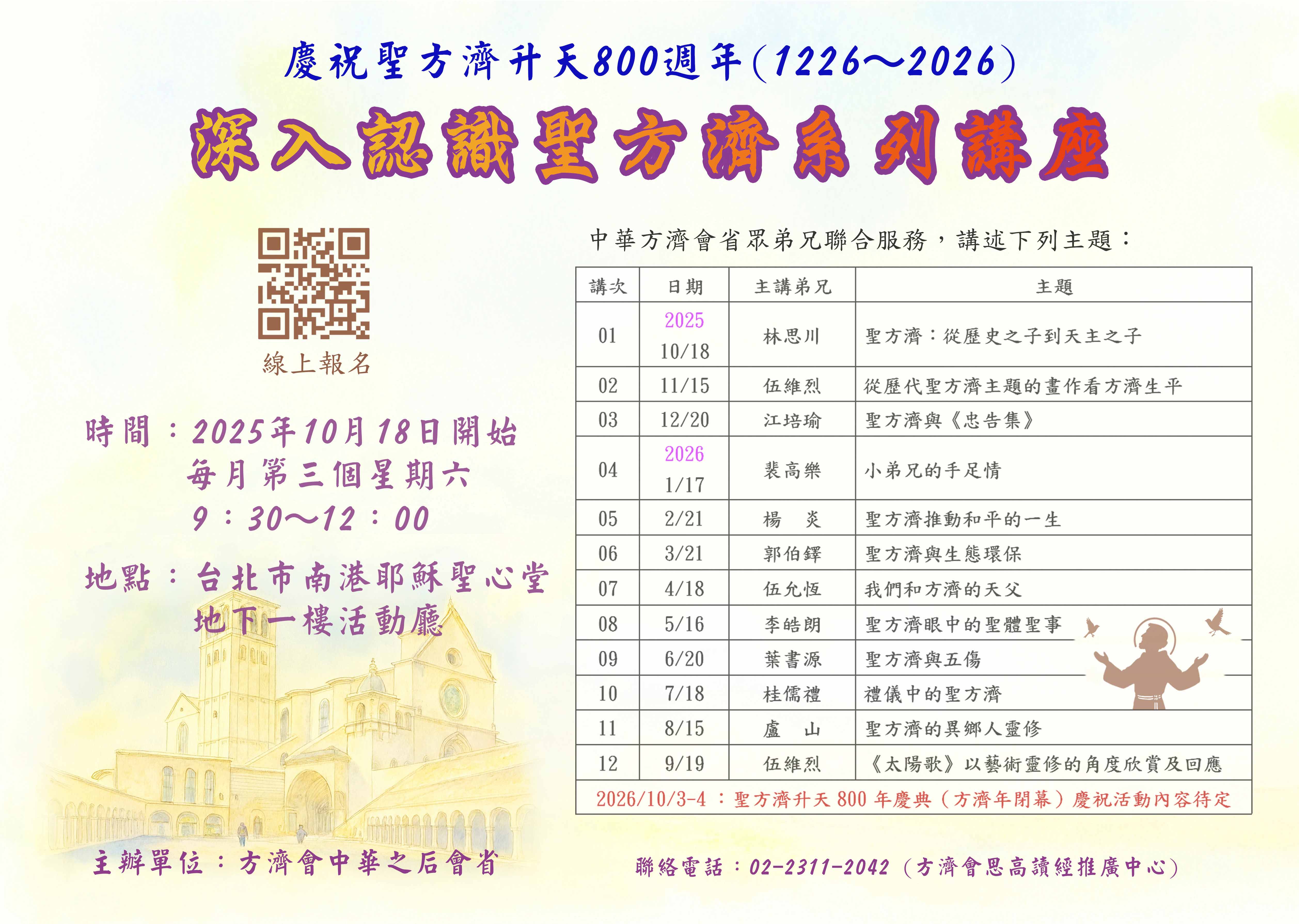誠摯邀請您一同走入聖方濟的靈修之路,更新信仰、活出福音的喜樂與盼望。