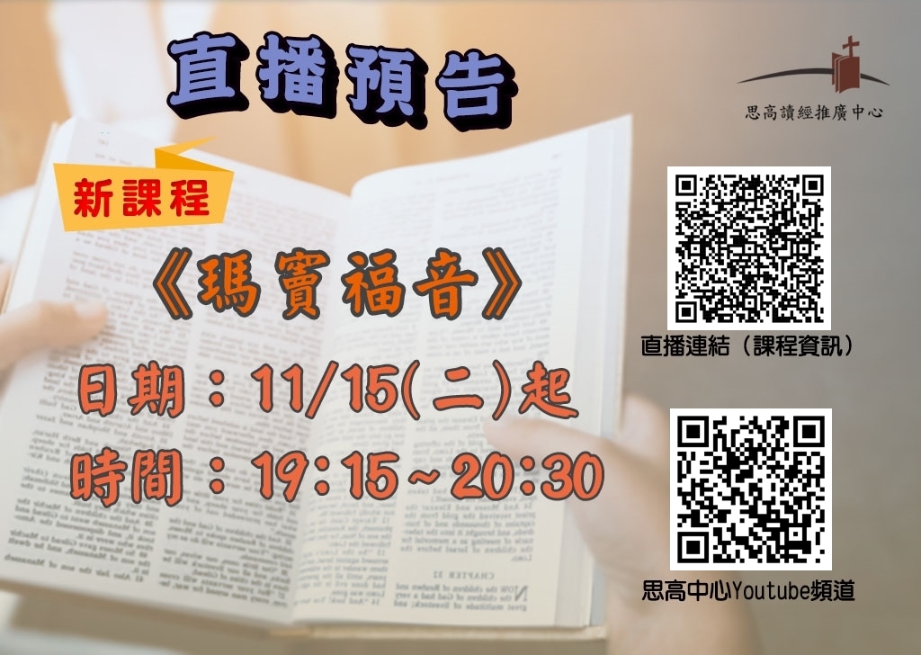 《瑪竇福音》週二直播文宣