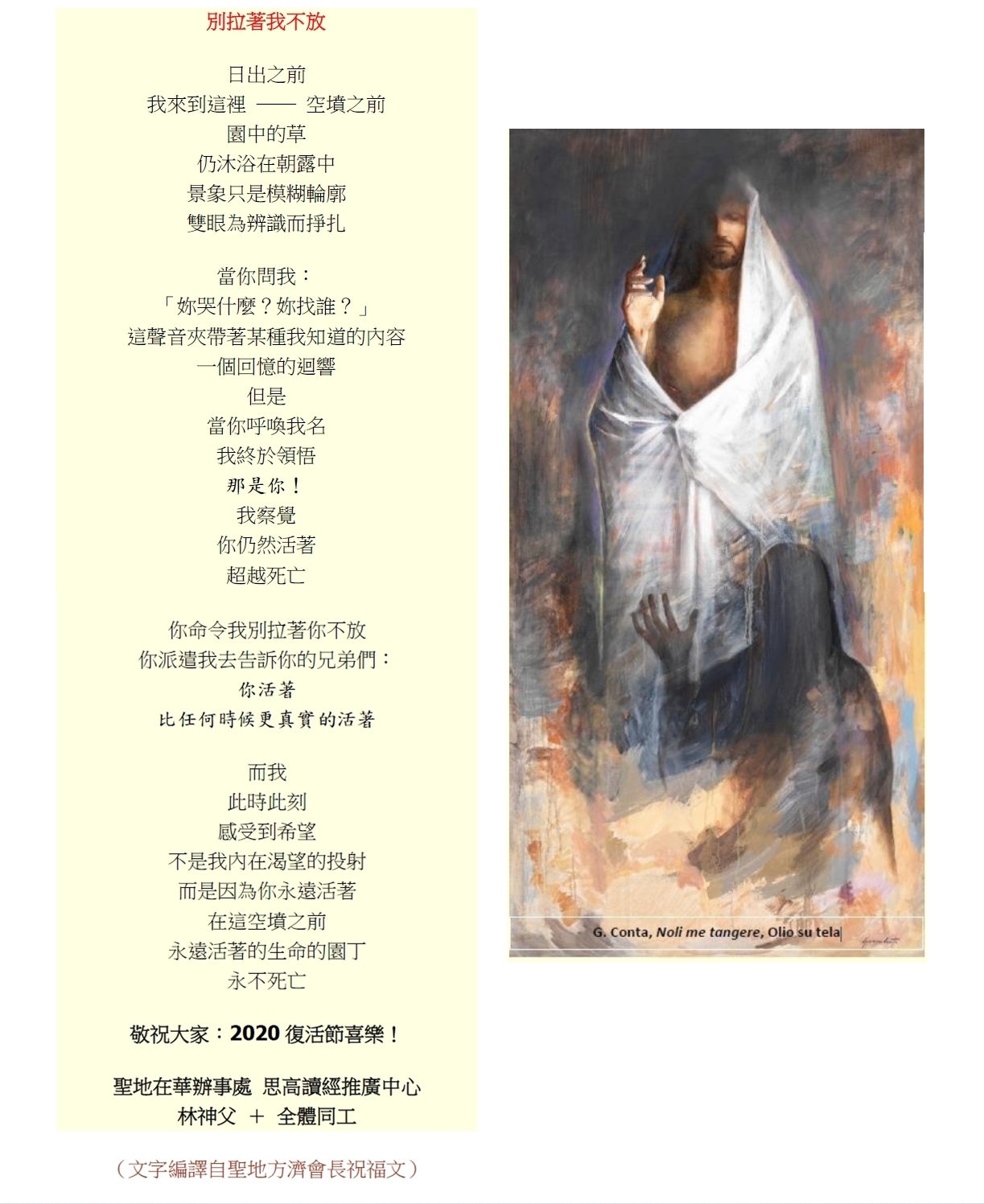 2020年復活節 來自聖地方濟會長祝福文「別拉著我不放」